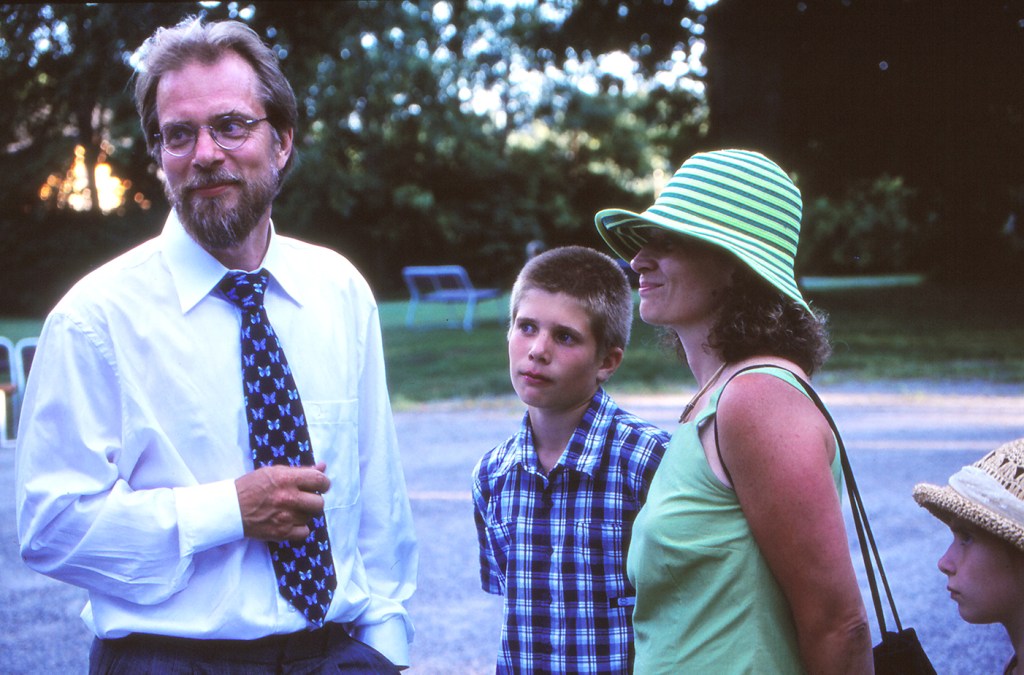 Ilkka Hanski perheineen Espoon Oittaalla 28.7.2001, kun hänen oppilaansa, nykyään professori Otso Ovaskainen vihittiin Merin kanssa. Täpläverkkoperhonen (Melitaea cinxia) Kirkkonummella kesäkuussa 1996 (TH).