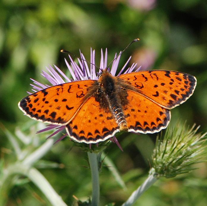 Tulivuori Etnan ympäristö on upea hedelmällisen tuhkan peittäessä kulkureitit. Etna on jatkuvasti aktiivinen ja purkauksia koettiin viimeksi 2022. Ylhäällä purppurakultasiipi (Lycaena alciphron alalaji gordius), idänverkkoperhonen (Melitaea telona). Alhaalla pilkkuverkkoperhonen (Melitaea didyma) ja algerianverkkoperhosen (Melitaea aetheria) koiras ja varsin erinäköinen naaras. Viimemainitun kotipaikka on Atlasvuoret Afrikan puolella, mutta Palermon eteläpuolella on kuitenkin kaunis vuoristoinen Rocca Busambra, josta harvinaisuuden löytää.