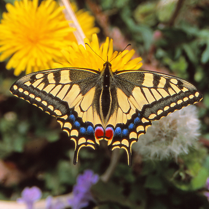 Japanin keväisiä perhosia vasemmalta ylhäältä: amurinritariapollo (Luehdorfia puziloi) (kuvattu kasvatusolosuhteissa), ritariperhonen (Papilio machaon alalaji hippocrates), aasiannaurisperhonen (Pieris melete), sirppirusonen (Anthocharis scolymus), pikkukultasiipi (Lycaena phlaeas alalaji daimio), nokkaperhonen (Libythea celtis alalaji celtoides) ja intianamiraali (Vanessa indica).