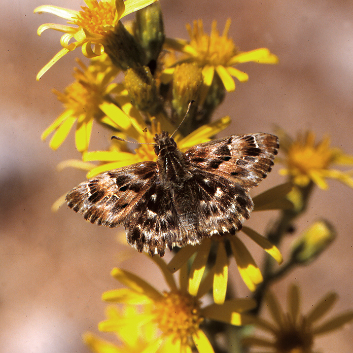 Richard tulee opastamaan perhoskeitaalle. Kuivaa on lokakuussa, vain keitaalla kukat vielä kukkivat ja vesi hiukan solisee! Siellä kisaavat kirjosiivet, kultasiivet, sinisiivet, joku somersilmä. Pikkukultasiipi pysähtyy purokivelle. Mikäs tuossa? Totta vie, juuri kuoriutunut etelänkuusamaperhonen, toinen sukupolvi. Eihän sitä ole täältä aikaisemmin ilmoitettu. Ja tietty, seurana paimenia kaitsemassa vuohilaumaansa. (Kuvat vuodelta 2003).