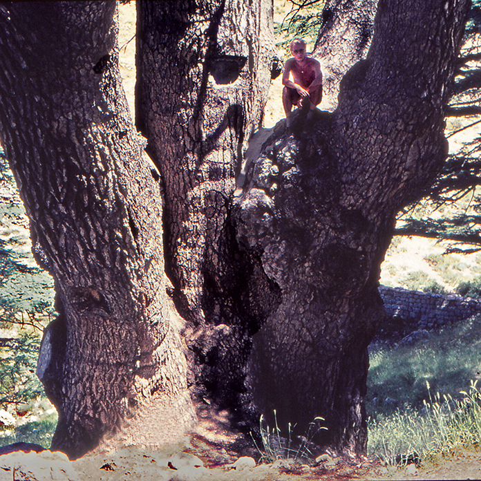Mitä Libanonin setreistä on jäljellä? Bsharren kylän lähellä 375 setriä: Arz al-Rab (Jumalan setrit, Les Cedres, The Cedars). Vielä on kymmenisen puuta, jotka ovat yli 1 500 vuotta vanhoja, lähes 40 metriä korkeita ja tyven ympärysmitta 12-15 metriä. On vielä tuo pieni setrimetsälö Choufin vuorilla. Kuvat ovat heinäkuulta 1968, jolloin Kari Kiuru, Martti Lalla ja Tari reissasivat kuplavolkkarilla Beirutissa ja vuorilla viimeisten setrien luona. Setrit olivat siis jo silloin mennyttä aikaa, mutta Libanon kukoisti, Beirutia kutsuttiin idän Pariisiksi ja yliopisto oli maailmankuulu (oik). Vuonna 2023 Libanon on sekasortoisessa tilassa ja Beirut varjo entisestään.